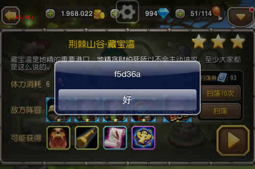 - 处于【关卡界面】,点击按钮进入【选择英雄界面】,若提示体力不足则结束。
